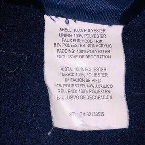 Shell-100% Polyester / Lining-100% Polyester / Faux Fur Hood Trim-51% Polyester, 49% Acrylic / Padding-100% Polyester