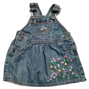 OshKosh B'Gosh Girls Blue Denim Floral Front Pocket Skirt Dress Overalls vintage