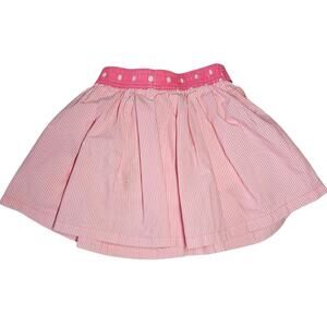 This OshKosh B'Gosh skort in pink and white stripes is perfect for summer fun! The adorable skirt has white shorts underneath, so your little girl can play on the playground, do cartwheels, and still stay modest. The faux belt is pink with white polka dots and ties in the front - such a cute accent! Excellent Pre-owned Condition - Little Girl's Size 5.