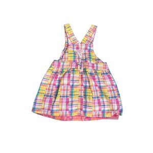 OshKosh BGosh Toddler Girls Plaid Overall Dress Size 24M Pink Yellow Teal Cotton