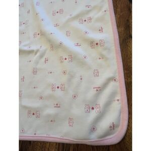OshKosh B'Gosh VTG Baby Receiving Blanket Pink White Bunny Bear Heart Striped