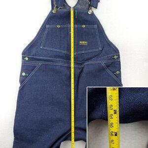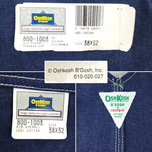 OshKosh B'Gosh vintage Vestbak union-made sanforized denim bib overall, made in USA, new with tags. Labeled as "38x32" with actual specs of approx. 38 waist and 33.5" inseam. I've included exact measurements, so you'll know if this will fit you or not. Ships safely in a secure box :)
