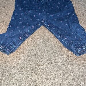 OshKosh B’Gosh Vintage VTG Union USA Vestbak Overalls Bubble Romper Floral 12M. Pink floral details. Snap button legs. Gold logo snaps on hips. Front pocket. Gathered elasticized cuffs. 100% Cotton. Union Made - AFL CIO United Garment Workers America. Great pre-owned condition. No stains/flaws. Smoke/pet free home. Offers welcome. Bundle & save. Ship same/next day. Packaged w/ care.