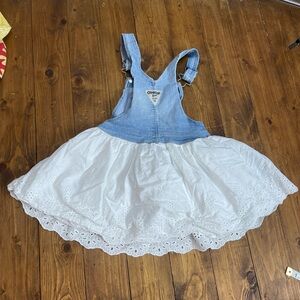 OshKosh B’Gosh overall dress Jean top with white eyelet lace skirt size 4T