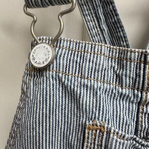 Charming blue striped overalls with a cute floral belt. Ideal for playful days.