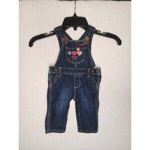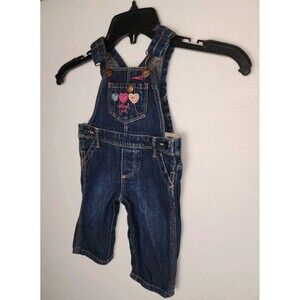 OshKosh Bgosh Blue Jean Bib Overalls Snap Legs Baby Girls Size 6 Months Hearts