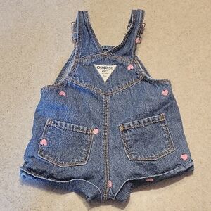 OshKosh B'gosh Blue and Pink Overalls with Heart Embroidery Size 9 Months