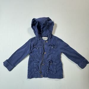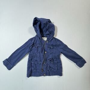 OshKosh B’gosh Boys Girls Utility Jacket 3T Blue Hooded Cotton Coat Pockets