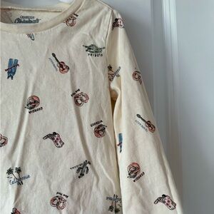 Cream tee featuring fun graphics like cacti, guitars, and more. Perfect for casual wear.