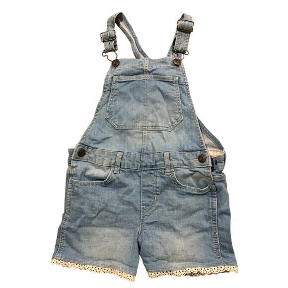 OshKosh B'gosh Girls Denim Lace Trim Shortalls Overalls Size 56