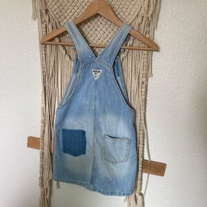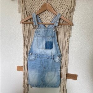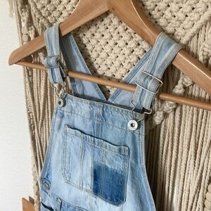 Classic light blue overalls. Features adjustable straps and front pocket. Perfect for casual wear.