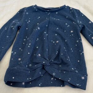 Navy long sleeve tee with star and moon pattern. Features a stylish front knot.