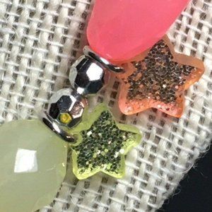 OshKosh B'gosh brand translucent purple, pink, greenish yellow beads with faceted silvertone beads , chain and findings, glitter sparkle Star dangles!