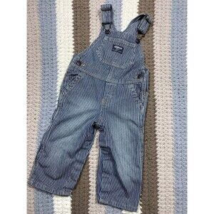 OshKosh B’gosh Railroad Stripe Denim Overalls – Size 18M