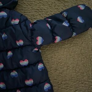 OshKosh B'gosh Rainbow Heart Pink Fleece-Lined Puffer Hooded 24mo Baby Winter Jacket