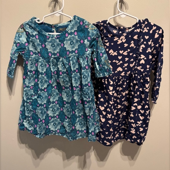Adorable dresses one with blue floral and the other with navy heart designs. Ideal for casual wear.