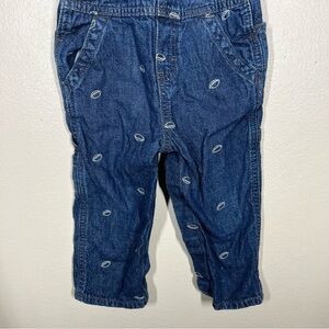 OshKosh B’gosh Toddler Football Embroidered Denim Overalls Size 24M Cotton