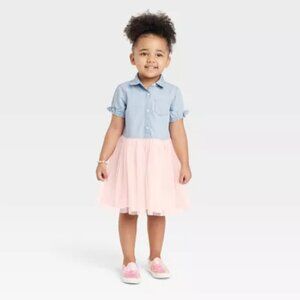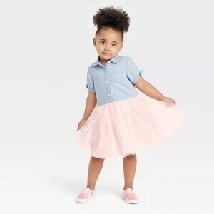OshKosh B'gosh Toddler Girls' Chambray Short Sleeve Tulle Dress