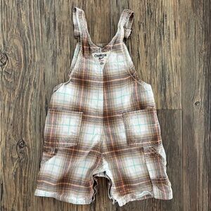 OshKosh B’gosh Vestbak Bib Overall Shorts 24 Months Plaid Shortalls Brown Multi