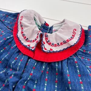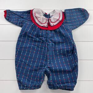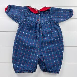 OshKosh B'gosh Vintage Embroidered Hearts Denim Romper Girls size 6-9 MNS USA