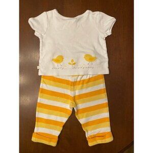 OshKosh pants and shirt. Chick/chicken on top, pants are yellow white and orange stripe. Both size 6-9 mo.
