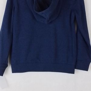 This fleece-lined hoodie is lightweight, soft, and cozy. It features a standard hoodie design with full zip front, large hood, side pockets, and long sleeves. This hoodie is new with tags.