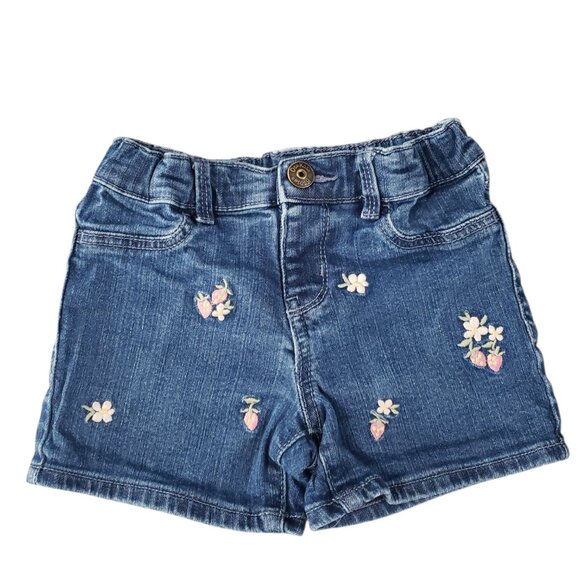 OshKosh Girl's Medium Wash Denim Shorts with Embroidered Flowers 4T
