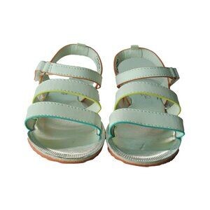The OshKosh Kids' Sandals are designed for comfort and style, featuring a white open-toe design and adjustable straps. Constructed with durable materials, these sandals are excellent for both indoor and outdoor activities. The orange sole adds a pop of color, making them both functional and fashionable for young wearers.