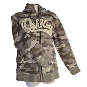 OshKosh Logo Hoodie Boys Zipped Sweatshirt Jacket Grey Camo Size 6