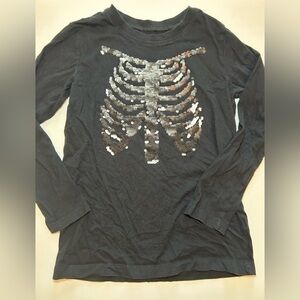 OshKosh Skeleton Long sleeve Tee Black Color Changing Sequins Size 10 Halloween