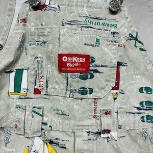 OshKosh B'Gosh Canvas Vestbak Overalls Boats Light House Kids Size 5 Shortalls