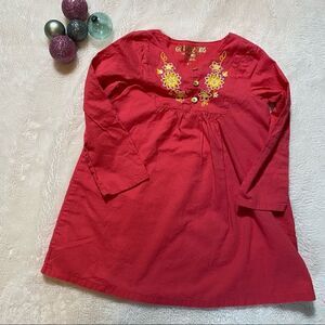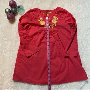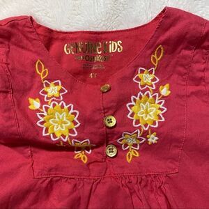 Osh Kosh Genuine Kids Size 4T girls long sleeved tunic or dress. Dark coral color, beautiful embroidery, 100% cotton and lined. Great condition!