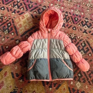Oshkosh 24 Month Girls Gray and Pink Hooded Fleeced Lined Zip Up Winter Jacket