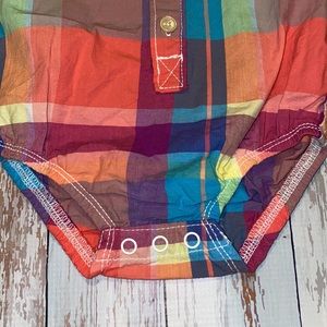 New with tags, Oshkosh nine month bodysuit. Perfect plaid for summer time fun. Accidentally bought two of these and didn’t get this one returned in time.