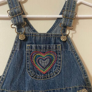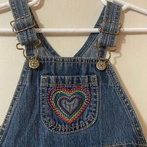 Oshkosh B’Gosh Denim Overalls Bib overalls with rainbow embroidered shirt n chest pocket Size 18 months Smoke free home