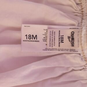This Oshkosh B'Gosh dress is a stylish and versatile addition to any little girl's wardrobe. The overall denim design in blue and white with eyelet lace accents gives it a cute and preppy look. The sleeveless design, square neckline, and adjustable straps make it comfortable for everyday wear. Made of 100% cotton, this dress is perfect for casual occasions and can be machine washed for easy care. The detailed stitching and brand logo add a touch of charm to this adorable piece.