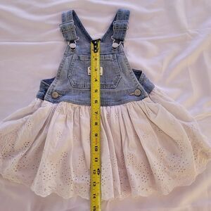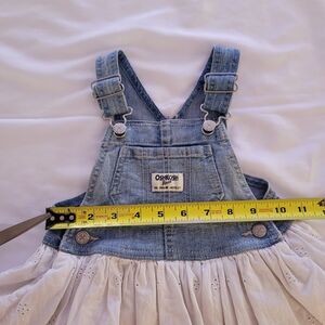 Oshkosh B'Gosh Dress Girls 12M Overall Denim White Eyelet Jumper Cute Preppy