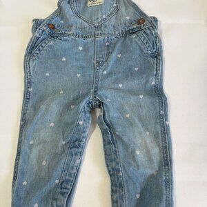 Oshkosh B'Gosh Girls 12 Months Bib Overalls Hearts Adjustable Crotch Snaps -Girls Size 12 Months -Smoke Free Home -Good pre-owned condition. Knees and shins have lots of wear on them but these don't have any holes or stains. Great for play