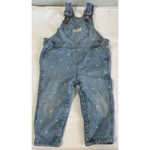 Oshkosh B'Gosh Girls 12 Months Bib Overalls Hearts Adjustable Crotch Snaps