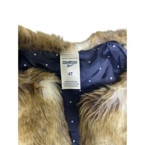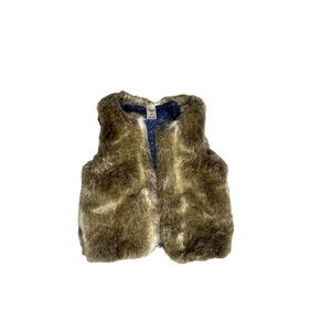 Oshkosh B'Gosh Girl's Sleeveless Shaggy Faux Fur Jacket Vest 4T Brown Navy Blue