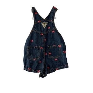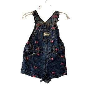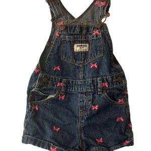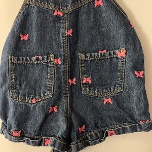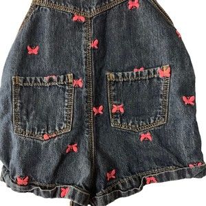 Oshkosh B'Gosh Girls size 24m Denim Shortalls Short Overalls With Butterfly Embroidered All Over