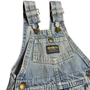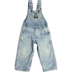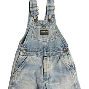 Classic light wash denim overalls with genuine vintage OshKosh B’Gosh tags and brass button hardware. Perfect retro toddler vestbak style piece with 90’s throwback style. Good vintage condition with light wear adding character.