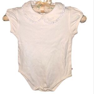 Oshkosh B'Gosh Infant Girls White Floral Embroidered Lace Collar Outfit Top