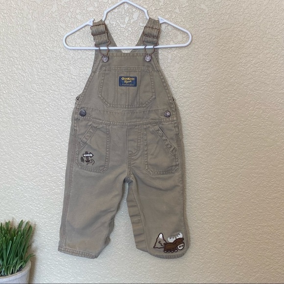 Oshkosh B’Gosh tan overalls moose and mountains 9 months