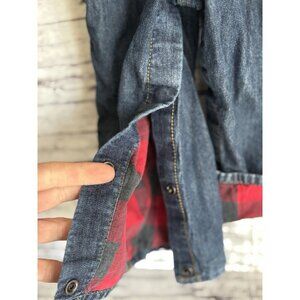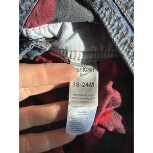 Oshkosh B’gosh 12 18 Months Classic Denim Blue Jeans Overalls Red Plaid Cotton