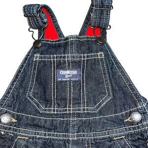 Oshkosh B'gosh 9M dark washed denim red fleece lined Blue carpenter Overalls