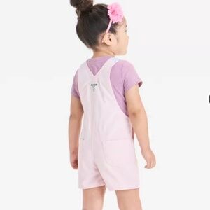 These overalls are 100% cotton in pale pink, toddler girls' 2T