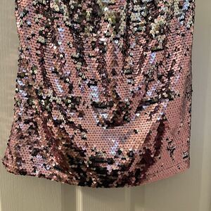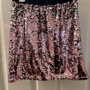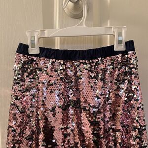 Oshkosh B'gosh Pink Silver Sequin Skirt Flippy Reversible Sequins Girls Size 12. Such a fun, pretty and cute skirt. The sequins flip from pink and silver and the material is a navy blue color. No issues that I can find. Very Good Used Condition.