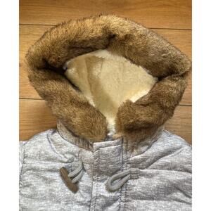 The Oshkosh B'gosh Pram Suit with Flip Booties is a stylish and practical winter coat for babies aged 3-6 months. Made with 100% polyester outer shell and lined with cozy fleece, this snowsuit features long sleeves, a zip closure, and fur trim accents. The solid gray color adds a classic touch to the puffer jacket style, making it perfect for outdoor activities like walking and skiing during the winter season. With its hood, pockets, and insulation properties, this suit keeps your little one warm and comfortable in cold weather.