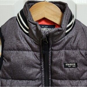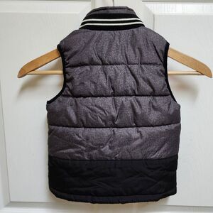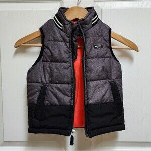 Oshkosh B'gosh Puffer Vest Boys 4T Black Gray Colorblock Zip Pockets Knit Collar Outdoor Preppy Winter Fall Sporty